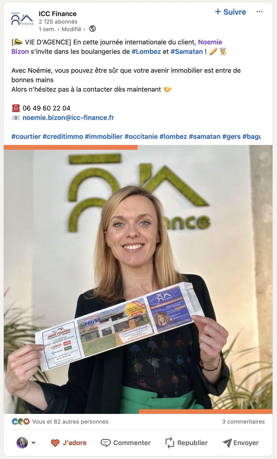 Votre message comprend : votre logo, vos coordonnées, vos offres…